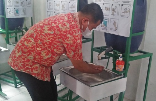 | Kadis Disdikbud Tebo Sindi, S.H. M.H Mencoba Bantuan Hand wash dari Tanoto Foundation |